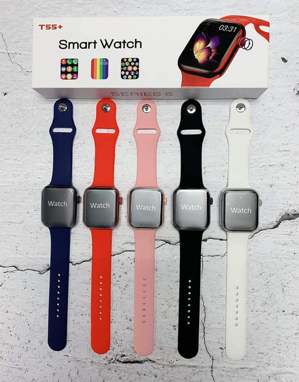 در ادامه موفقیت مدل T55 که کپی اپل واچ سری 5 می باشد، شرکت سازنده این ساعت اقدام به ساخت مدل +T55 مشابه اپل واچ سری 6 در سایز 44 میلیمتری نمود. این ساعت در کنار قیمت بسیار مناسب خود دارای صفحه نمایش بدون حاشیه و با کیفیت، قابلیت مکالمه، بدنه آلومینیومی مقام، بند قابل تعویض و قابلیت ضد آب تحت استاندارد IP67 می باشد. باتری این مدل دارای شارژ مگنتی بوده و امکان استفاده به مدت 1 الی 2 روز را فرآهم می کند. این مدل دارای پردازنده سریع تر نسبت مدل پیشین خود بوده و دارای امکان تغییر واچ فیس از میان واچ فیس های متنوع موجود در ساعت و نرم افزار همراه را فرآهم می آورد. مدل +T55 مجهز به کلید چرخان (Magic button) ، سنسور سنجش میزان ضربان قلب ، پایش فعالیت های ورزشی و ..... دیگر می باشد. این ساعت با پشتیبانی کامل از زبان فارسی تمام نیاز های روزانه شما از یک ساعت هوشمند را بر طرف میسازد.