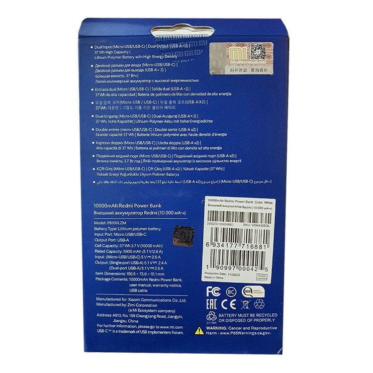پاوربانک 10000 شیائومی Xiaomi Redmi PB100LZM 2.4A نسخه گلوبال + کابل