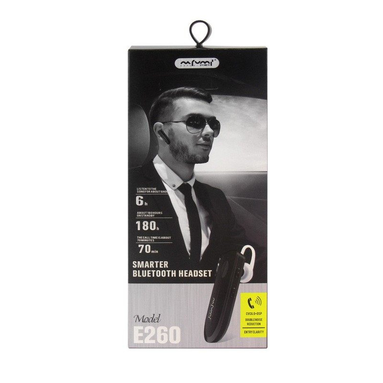 هدست بلوتوث E260 یک هدست با طراحی ساده، شیک و سبک از شرکت NAFUMI میباشد که به بازار لوازم جانبی موبایل عرضه شده است. هدست بلوتوث تک گوش برای افرادی که حساس به قرار دادن هندزفری و هدفون هستند بسیار مناسب است. با هدست E260 میتوان به مدت 10 ساعت مکالمه کرد یا موزیک گوش داد و 180 ساعت هم به حالت استند بای میتواند باشد. برای نشان دادن میزان شارژ آن در روی بدنه چراغ LED تعبیه شده است. محدوده عملکرد بلوتوث این هدست حداکثر 10 متر میباشد و فقط قابلیت اتصال بی سیم دارد و برای برقراری تماس بدون نیاز به لمس گوشی میتوان به کمک دکمه روی بدنه هدست ارتباط برقرار کرد و همچنین دکمه کنترل صدا نیز به روی دستگاه قرار دارد. یکی از قابلیتهای خوب این هدست ضد آب و ضد عرق بودن آن است که باعث محبوبیت بین کاربران این مدل هدست شده است.