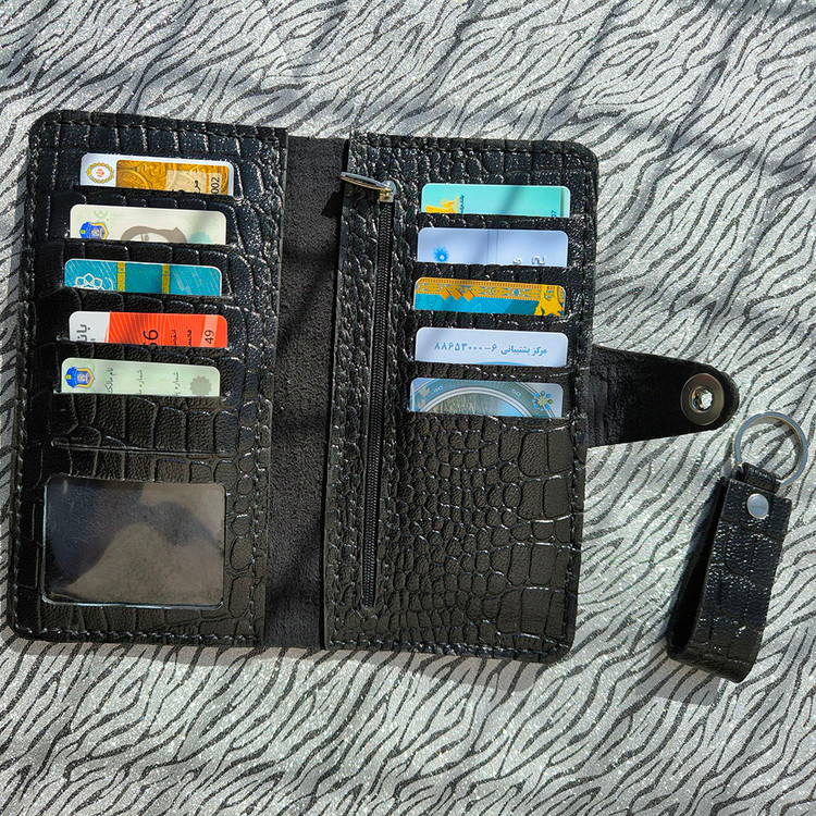 ست کیف پول و جاکلیدی چرم طبیعی دست دوز