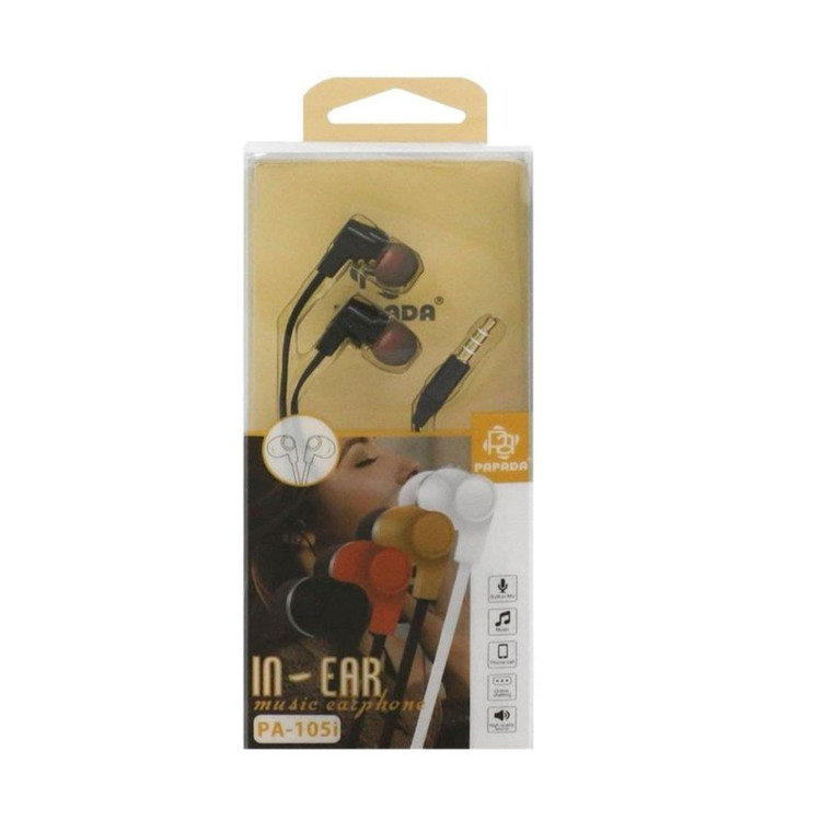 هندزفری PAPADA مدل PA-105I از قبیل هندزفری های هوشمند (Smart Stereo Headset Super Bass Headphones) این کمپانی بوده که صدای بیس فوق العاده آن باوجود کیفیت صدای عالی Stereo ، شفافیت و وضوح مطلوبی را به مصرف کنندگان این محصول ارائه میدهدو دارای سیم مقاوم سیلیکونی و شما میتوانید با این هندزفری تماس برقرار کرده و یا به موسیقی های خود با بهترین کیفیت گوش فرا دهید. طول آن 1.200 متر و سری AUX آن از نوع جک 3.5 میلیمتری میباشد.