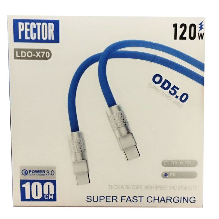 کابل شارژ اورجینال PECTOR پکتور 120W X70 PD ماسب ایفون 11 تا 14
