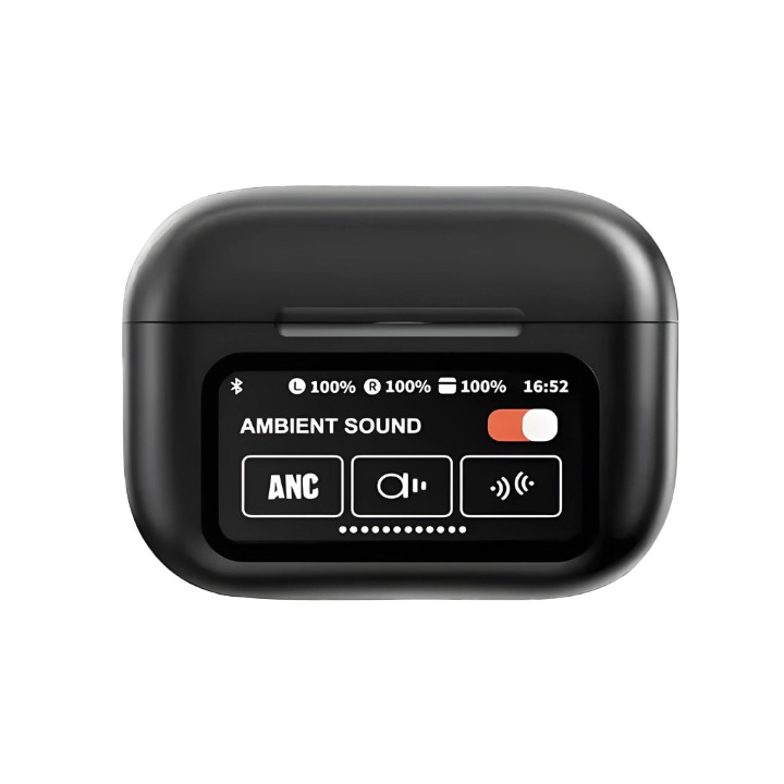 LCD روی کیس شارژ میزان باتری کیس و هدفونها را نمایش میدهد و هنگام باز شدن درب کیس روشن میشود.