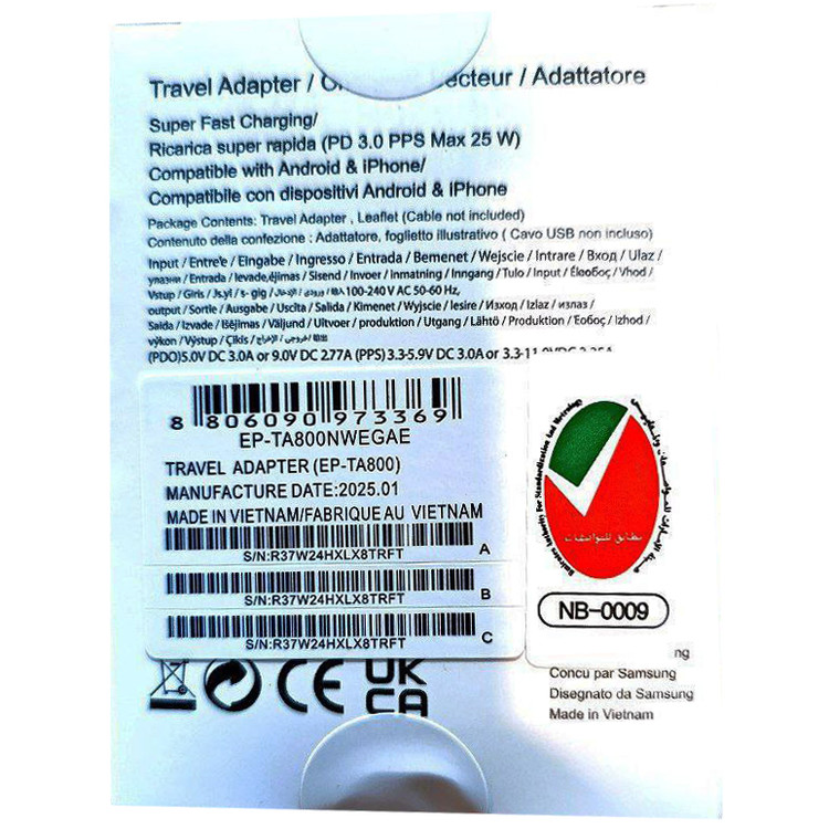کلگی شارژ 25W سوپر فست برد آبی ویتنام پکدار