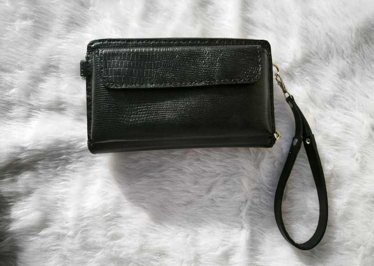 کیف دستی مشکی دور زیپ لیزارد