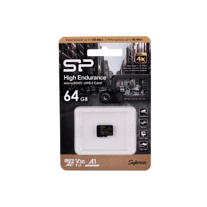 کارت حافظه Silicon Power Golden Series High Endurance با ظرفیت ۶۴ گیگابایت، گزینهای ایدهآل برای استفاده در دوربینهای مداربسته، دوربین خودرو (داشکم) و دوربینهای ورزشی است. این کارت با رابط SD 3.0 / UHS-I و استاندارد سرعت Class 10، سرعت و پایداری بالایی را هنگام ضبط تصاویر و ویدئوهای طولانیمدت ارائه میدهد.