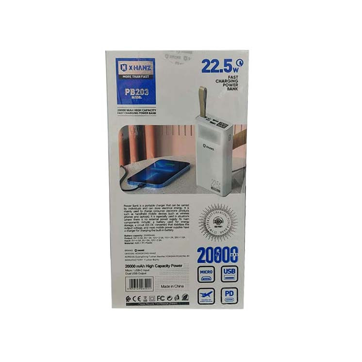 🌟 خرید پاوربانک Xhanz PB203 با ظرفیت ۲۰۰۰۰ میلیآمپر ساعت | شارژ سریع و ایمن ⚡