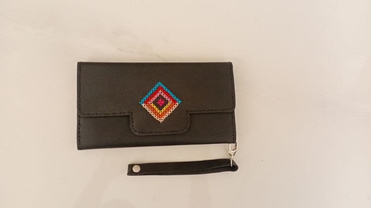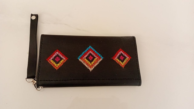 کیف پول چرم طبیعی سوزندوزی شده سهلت (۱۰٫۵×۱۹) | بند مچی + جای کارت متعدد