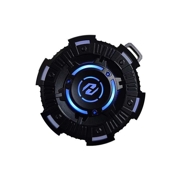 کیس شارژ دایرهای با ظاهر متالیک و چراغهای جذاب گیمینگ.
